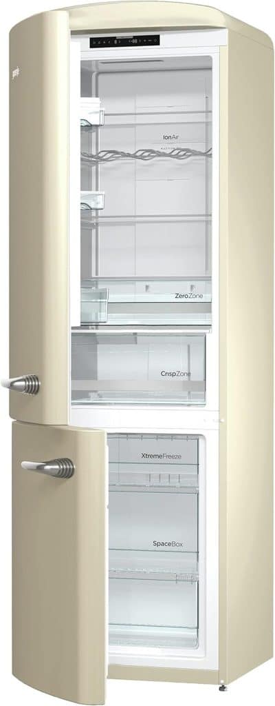 Le réfrigérateur-congélateur Gorenje ONRK193C-L est un appareil qui allie design élégant et performances exceptionnelles. Sa touche rétro, avec une finition crème, apporte une esthétique séduisante à n’importe quelle cuisine. Grâce à son efficacité énergétique A+++, il s’avère être un choix éco-responsable, tout en restant silencieux avec un niveau sonore de seulement 42 dB. Ce modèle offre une grande capacité de stockage de 307 litres, idéale pour les familles, bien que son espace de congélation de 85 litres puisse sembler restreint pour certains. Malgré un coût initial relativement élevé, la durabilité et les économies d’énergie potentielles en font un investissement judicieux. Le système de froid sans givre et les clayettes en verre trempé ajoutent une note de praticité et de durabilité. En somme, le Gorenje ONRK193C-L séduit par son charme rétro et ses performances, malgré quelques concessions sur l’espace du congélateur.